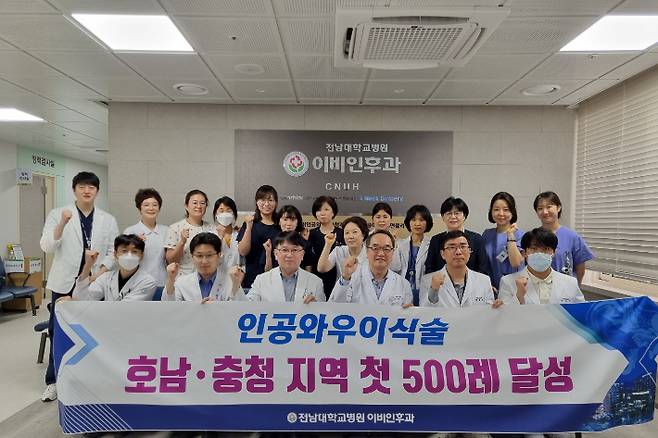 전남대병원 이비인후과 인공와우팀이 호남·충청지역 최초로 인공와우 이식술 500례를 기록했다.